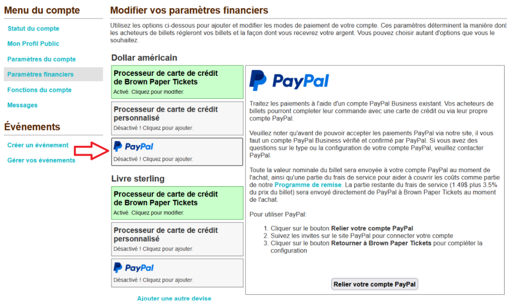 Pour utiliser PayPal avec Brown Paper Tickets, veuillez suivre ces instructions :